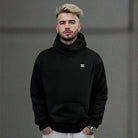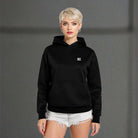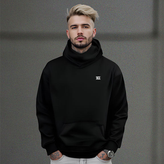 A pullover hoodie crafted from a fine, soft and sturdy blend of cotton and recycled polyester. It features a relaxed silhouette with dropped shoulders, a kangaroo pocket, self fabric lined darted hood, featuring an urban, elevated look. High quality cuffs and bottom hem in 1x1 rib.