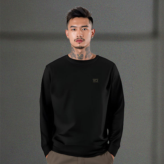 A sweatshirt made from a fine, soft and sturdy blend of cotton and recycled polyester. It features a relaxed silhouette with dropped shoulders, featuring an urban, elevated look. High-quality cuffs and bottom hem in 1x1 rib.