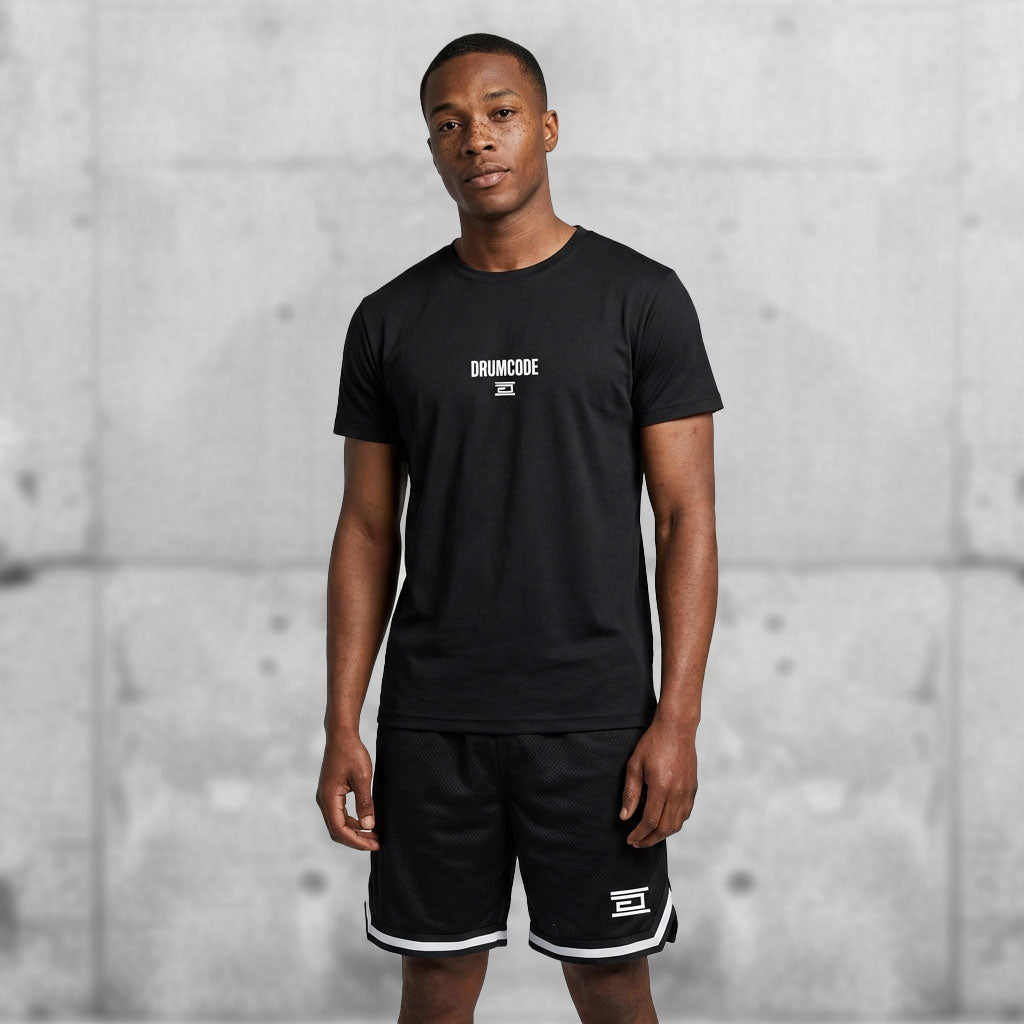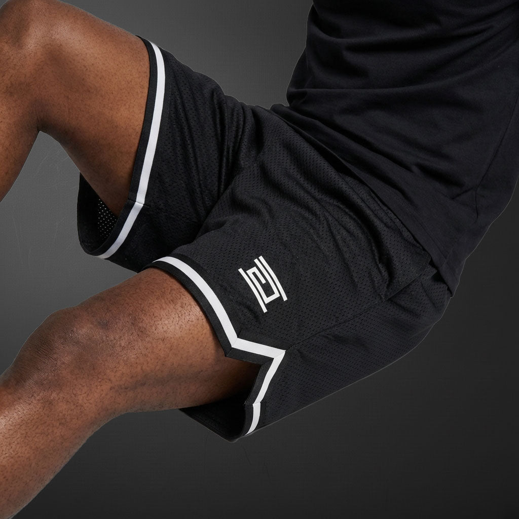 • Polyester micro-mesh. Fashionable shaped hem with short side cut. White stripes at hem and side. With a drawstring at the waist.