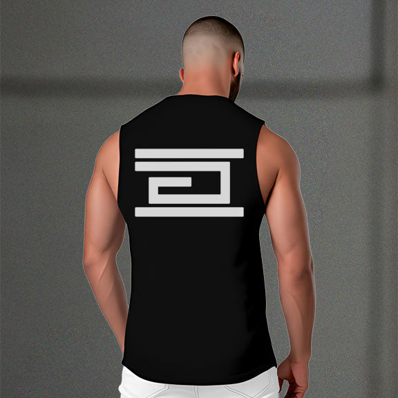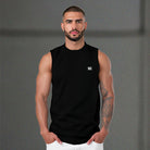 A loose-fit raw edge vest with a ribbed crew high neck. Made from a blend of soft cotton and recycled polyester.