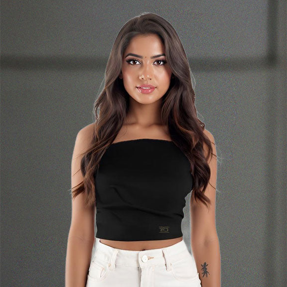 A slim-fit bandeau top made from a smooth blend of cotton and elastane. Strapless with double-layer and silicone grip tape on the front.
